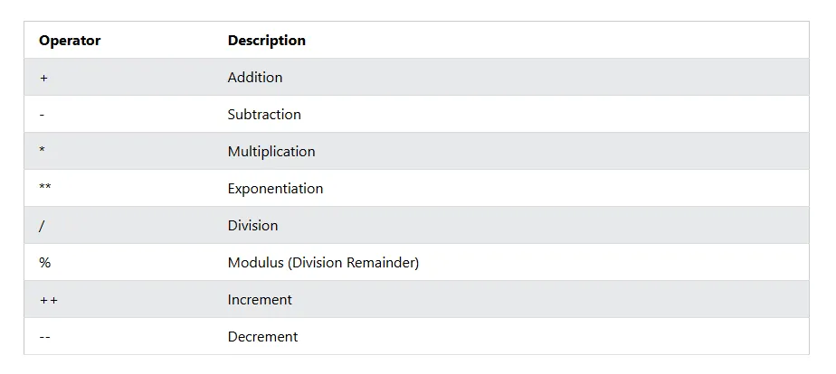 The Js Arithmetic Operators are used to perform arithmetic operations on numbers.